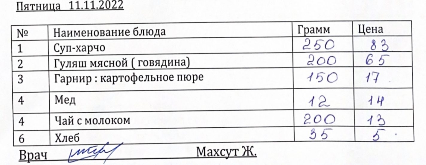 Мектеп асханасының мәзірі 11.11.2022