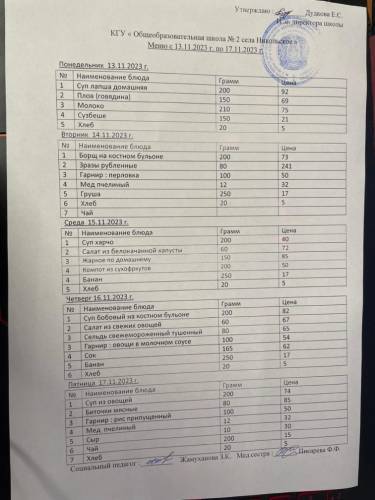 Меню с 13.11 по 17.11.2023
