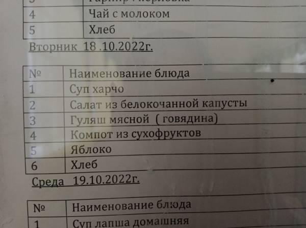 Мектеп асханасының мәзірі 18.10.2022