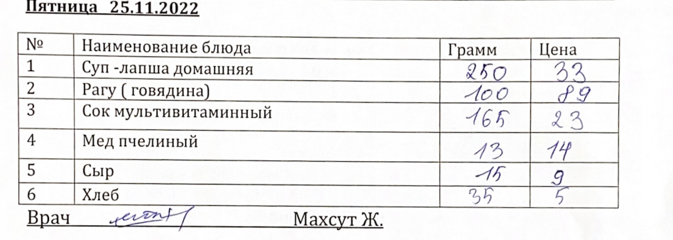 Мектеп асханасының мәзірі 25.11.2022