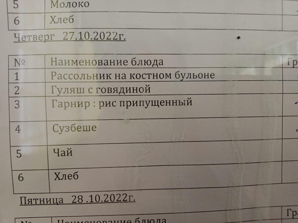 Мектеп асханасының мәзірі 27.10.2022