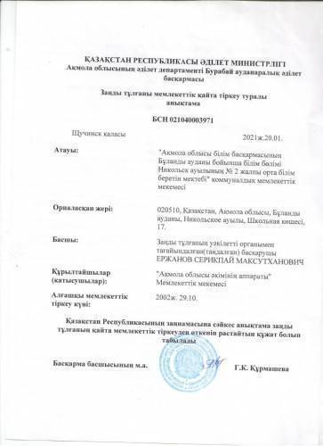 «Ақмола облысы білім басқармасының  Бұланды ауданы білім бөлімі Никольск ауылының № 2 жалпы орта білім беретін мектебі» коммуналдық мемлекеттік мекемесі
