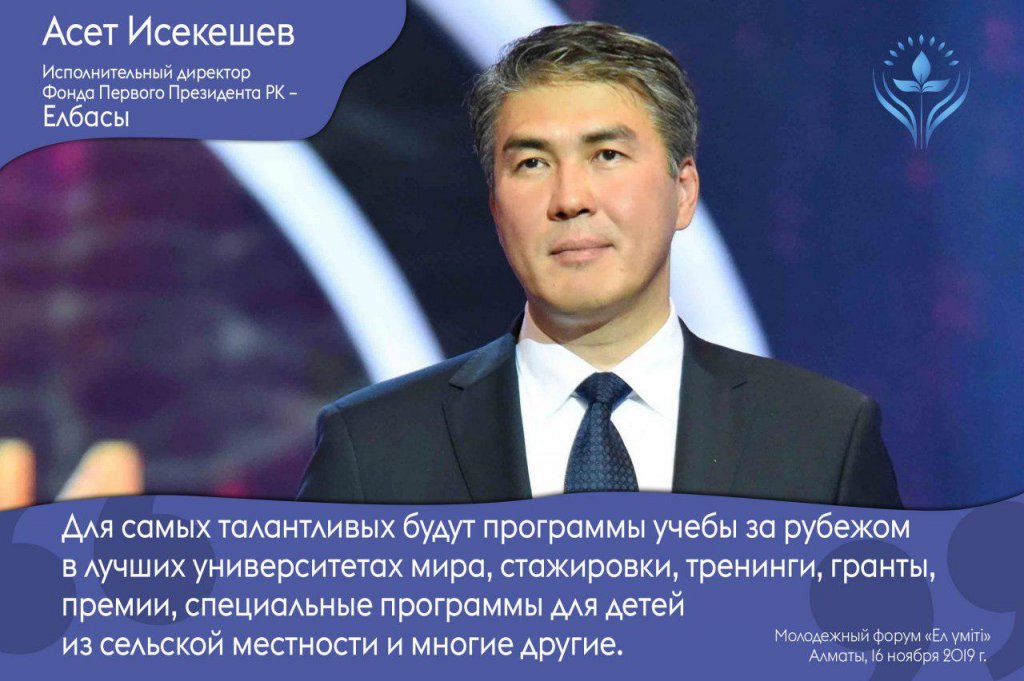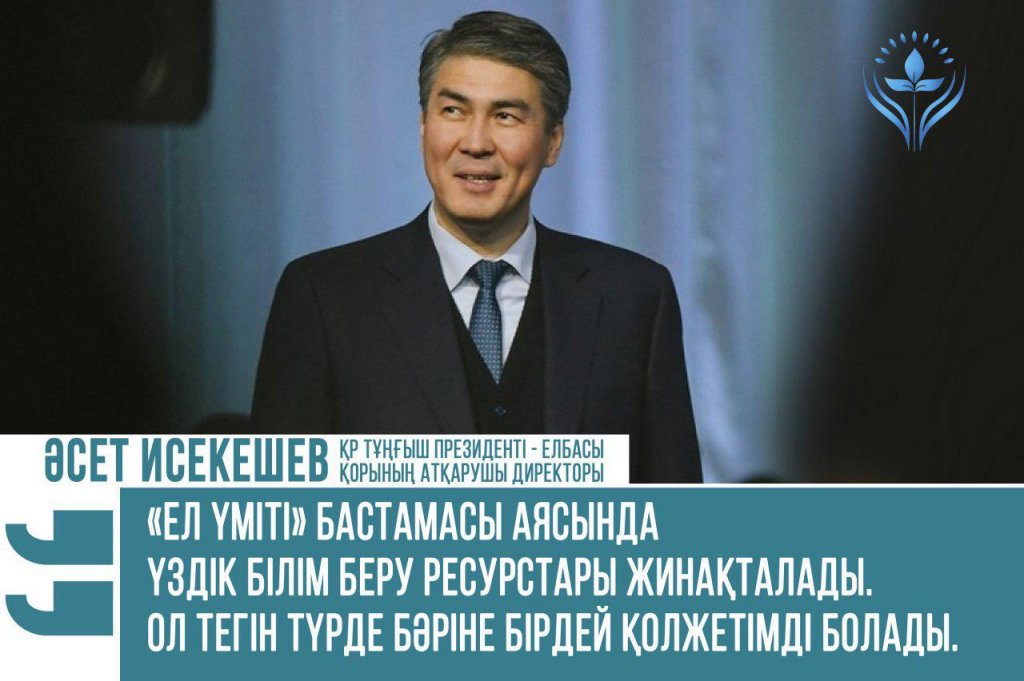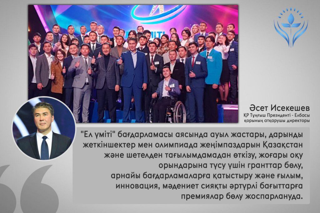 А. Исекешев: «В рамках "Ел үміті" запускаются образовательные программы, стажировки и гранты»